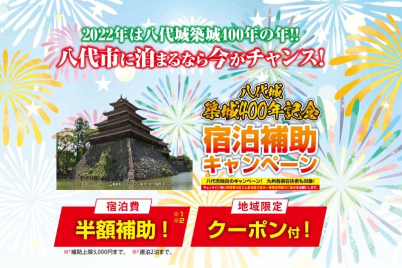実質1000円で宿泊可能!「八代城築城400年記念宿泊補助キャンペーン」を利用して熊本・八代旅行を楽しもう