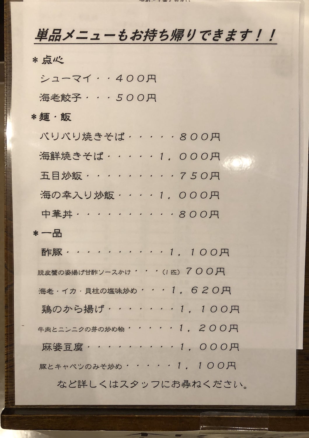 ・お店の外にメニュー表(店内にもある)