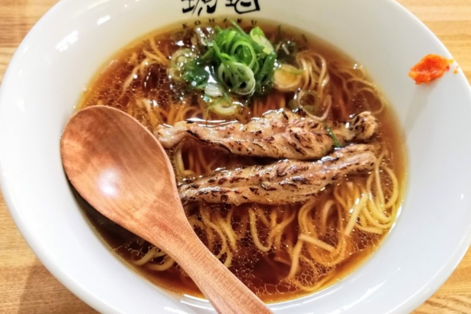 熊本のブランド鶏「天草大王」の鶏ガラを使った、澄み渡った黄金色のスープが特徴のラーメン。