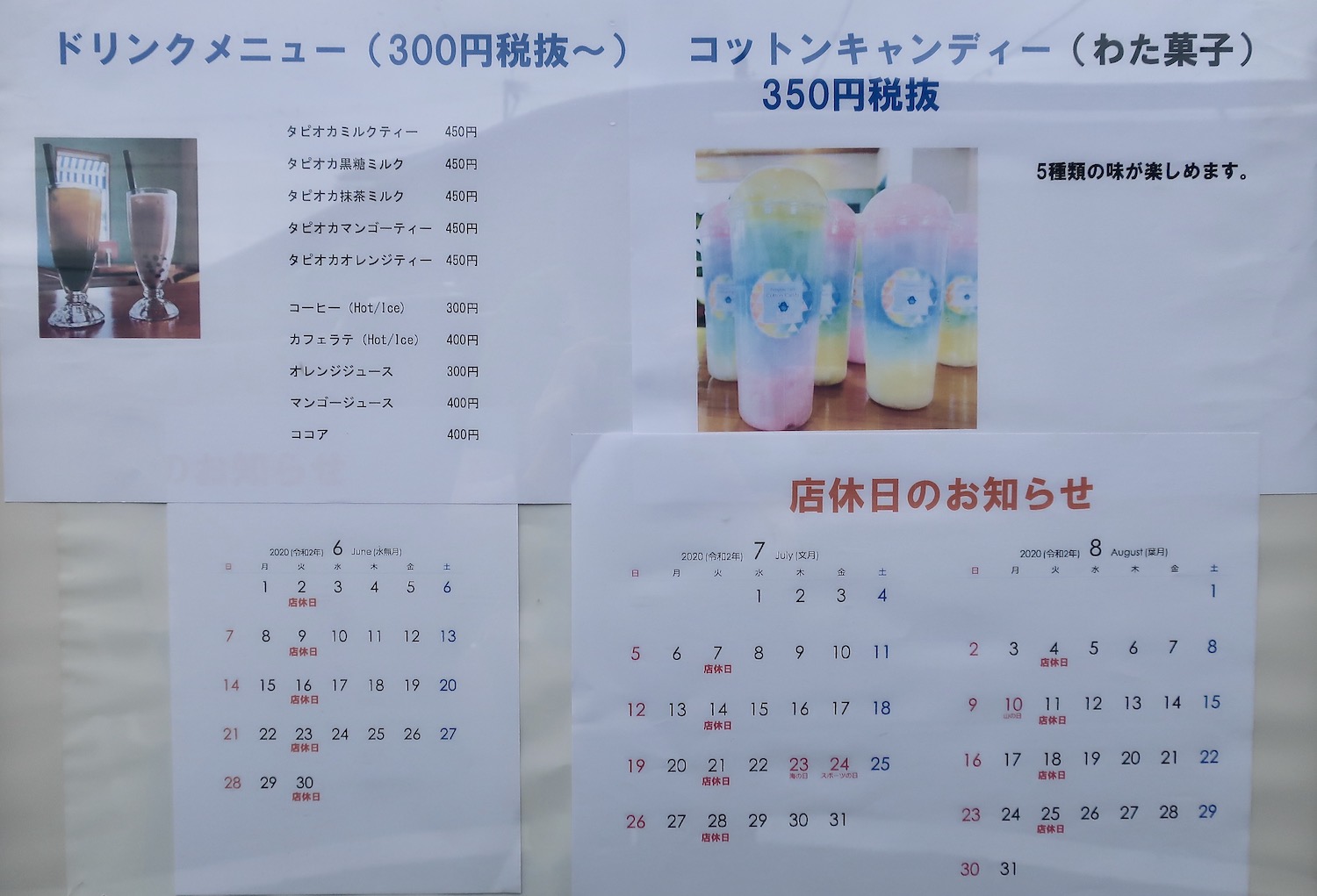 台湾かき氷、タピオカドリンク、コットンキャンディ はテイクアウトもできるそうです。