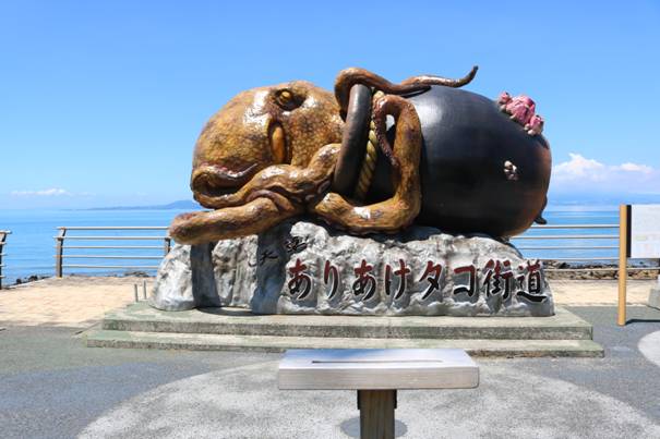 また、この街道沿いには幸運の使者である「天草ありあけのタコ」像もあります。